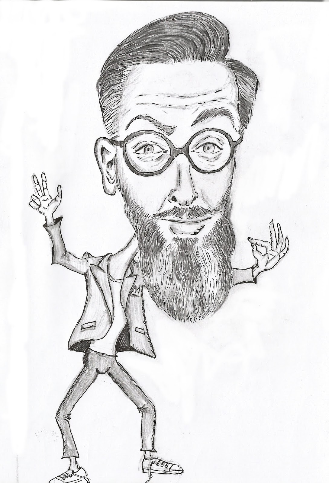 Please review examples - the caricatures made earlier. The drawings are prepared with black ink, then shaded with pencils of various gradation.